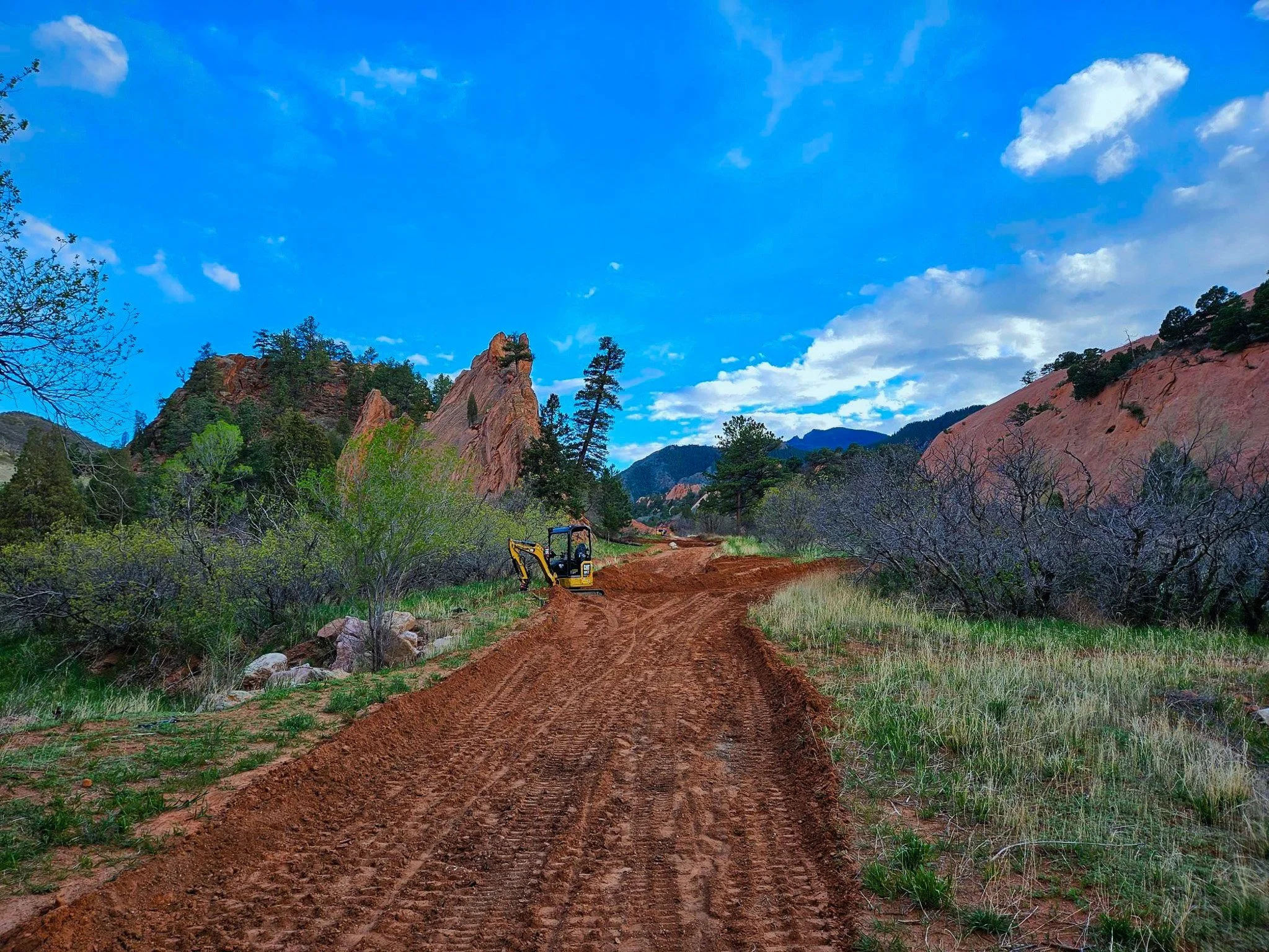 Constructing a wheelchair accessible .6 mile trail around the perimeter of a pond for a therapeutic horsemanship center.