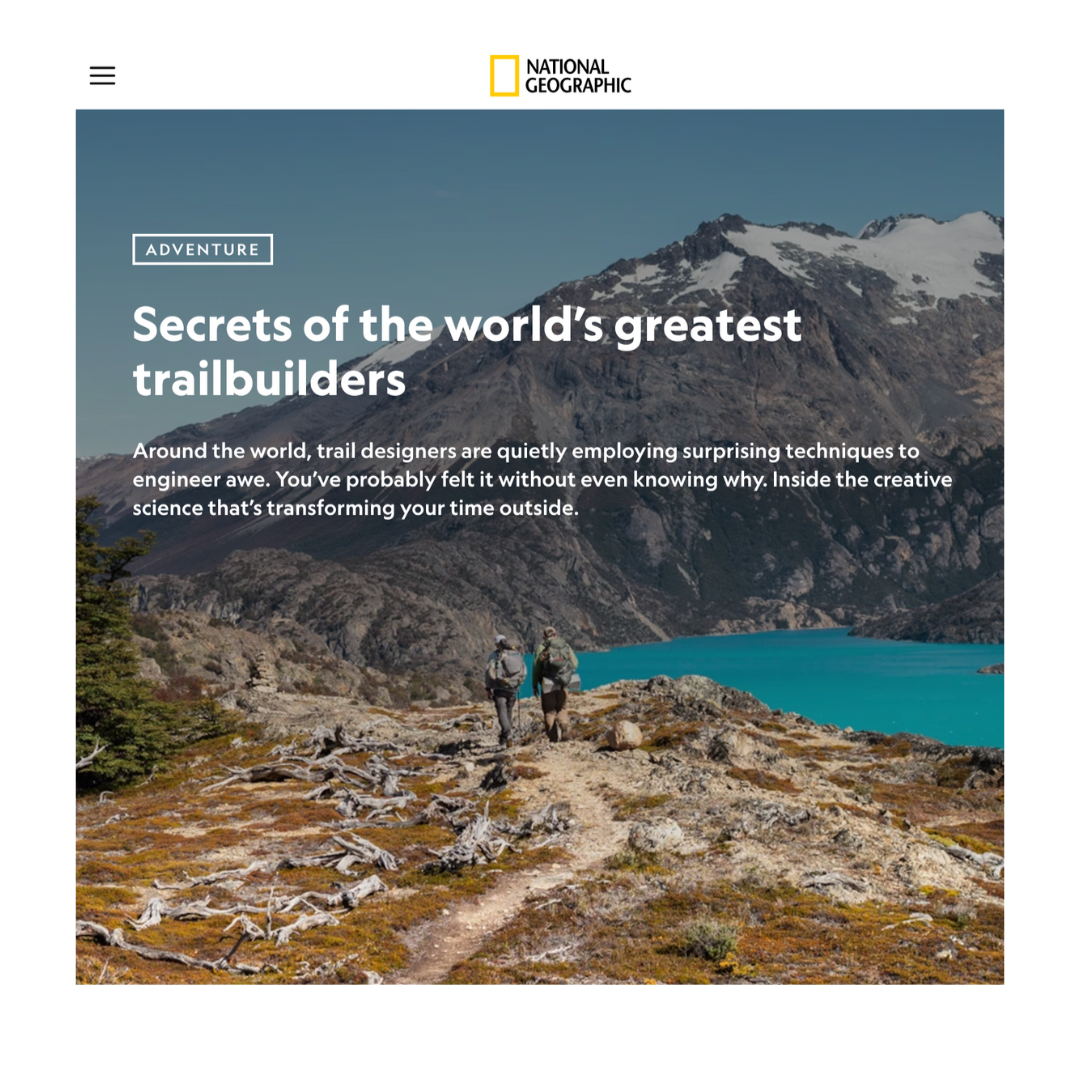 National Geographic has published a feature on trailbuilders - and not just online, but in the full print edition. This kind of coverage is a big moment for trails and trail professionals.